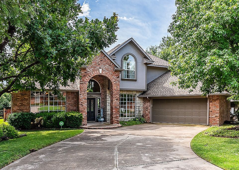 This custom 2 story home is located in a family-friendly neighborhood, on a quiet street, on a cul-de-sac. It has hardwood floors, vaulted ceilings in some areas, an office/study, formal dining room, and features a fireplace and a security system. Also on the main level are the master bedroom, a full bath, a half bath and laundry. The kitchen features hardwood floors, granite counters, tiled back splash, stainless steel appliances, pantry, butler's pantry and breakfast nook. The master bedroom is located on the main level and features hardwood floors, vaulted ceilings, and floor to ceiling windows. The attached master bath includes Travertine Tile, granite counters, jetted tub and Travertine tiled shower. There is also a walk-in closet and master retreat off the master bath. The upper level includes 3 bedrooms and a full bath. Third bedroom features a lofted ceiling and can be used as a family room. Outside you'll find a porch and patio overlooking the yard with sweeping views of expansive greenbelt. The home includes a storm shelter & workshop in garage, walk-in attic spaces and third attic over garage. Neighborhood access to community pool, park and extensive trail system are all just down the street. Home has security cameras installed at all exterior doors. This house is move-in ready and clean as a whistle. it has it all! For virtual tour go to: https://www.fsbohomes.com/homes/edmond/ok/details/119086/540-birdsong/