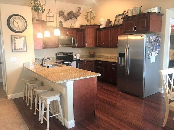 Like New "Bailey" home over a full finished basement and desirable split bedroom floor plan. This home boasts warm colors, nice granite, tile and upgraded laminate flooring. Kitchen is spacious with lots of cabinets, large breakfast bar, and also vaulted like the great room. Super location with great views and a short walk to the Mariana and close to schools and shopping in Spring Creek. Basement has huge family room, office area and two bedrooms with a full bath. Lots to love in this home!!!