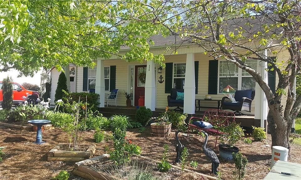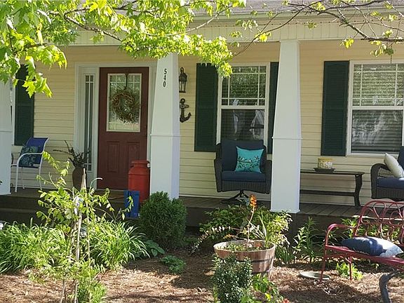 Cheery, single-story bungalow on a cul-de-sac. The front garden welcomes you to the covered porch, complete with porch swing. Living and dining room have vaulted ceiling. Galley kitchen has plenty of cabinets, lots of counter surface and pantry. Master bedroom is en suite. Master bath has double vanity. 2nd and 3rd bedrooms are separate from master. Laundry room also provides access to backyard. Garage with extra parking pad. Rear screened porch. Barn-style building provides additional storage and stays.