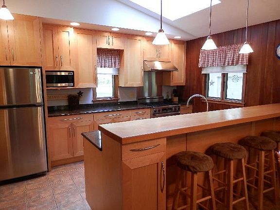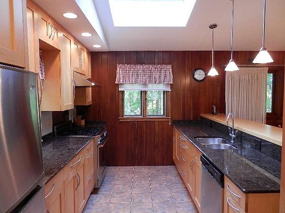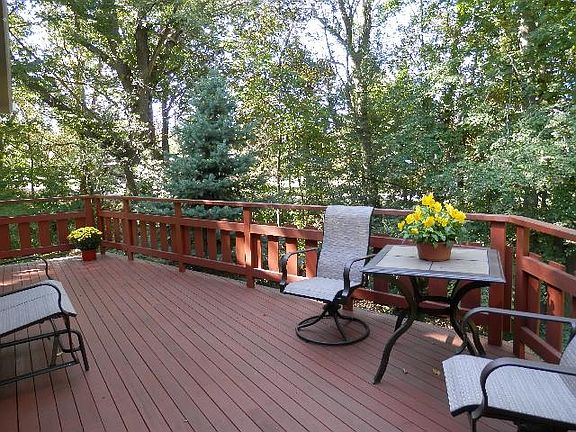 Seclusion and privacy in this wonderful Manistee neighborhood! 2 1/2 blocks from the Golf and Country Club plus you can walk to the Lake Michigan beach, boat launch, ball fields, picnic areas and children's park. This multi-level home has a warm contemporary feel with 1 inch solid cherry tongue and groove accents walls and abundant windows for natural light. 13 tons of Onaway stone were used when constructed.This home is tucked into a wooded ravine with a large yard and circular drive in front. Newer, custom, solid maple kitchen with granite countertops, ceramic tile floor, a skylight and stainless steel appliances. Main floor laundry room with half bath. All baths have been remodeled. Updated electrical and plumbing with a new boiler installed in 2005. Newer roof on home and garage. Redwood siding. The redwood deck was new in 2007 and provides the ultimate privacy and wooded view. Even views of Lake Michigan seasonally! Room for an additional garage if desired. Absolutely immaculate!