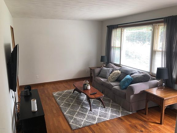 Great two bedroom Ranch home in a quite neighborhood. Hardwood floors or laminate throughout with an updated kitchen with separate dining room. Half of the basement is finished with a possible 3rd bedroom. Home sits on a corner lot with a 24x27 Morton built detached garage. Also features a covered porch with hot tub.