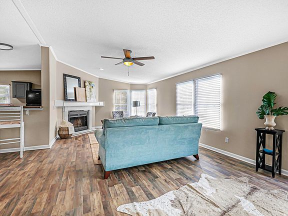 Tranquility awaits!! Country quiet, yet city convenient this adorably renovated home sits on over an acre of land with a large detached storage building. Featuring 3 bedrooms, 2 baths, 1568 square feet with a open floor plan. Vaulted ceilings, stylish lighting, and a wood burning fireplace is featured in the living room. A breakfast bar and plenty of cabinets & counter space complete the kitchen along with the laundry/ mud room for convenience. The owner's suite has a walk-in closet and an en suite bathroom with dual vanities, separate shower, and soaking tub. Both secondary bedrooms have ceiling fans and share a full bathroom. Make your way outside to find that most of the yard is fenced in & has a private drive.
