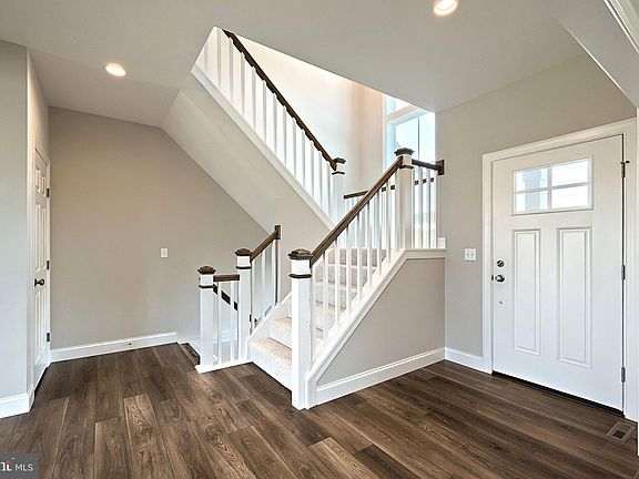 This beautiful home features a welcoming front porch, stylish exterior, and a 2-car garage. The garage opens to a mudroom complete with a large pantry, powder room, and a built-in bench. The first floor boasts durable vinyl plank flooring in the main living areas and 9’ ceilings. To the front of the home is a carpeted flex room that can be used as a study, living room, or other versatile space. The kitchen is well-appointed with quartz countertops, a tile backsplash, and enhanced cabinetry and appliances. Adjacent to the kitchen is a sunny dining area with access to the rear deck and a comfortable family room warmed by a cozy gas fireplace with stone surround. The 2nd floor owner’s suite features an expansive closet and a private bathroom with a tile shower and double bowl vanity. Also on the 2nd floor are 3 additional bedrooms, a full bathroom, and a convenient laundry room.