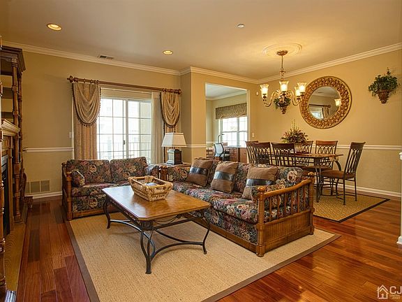 Simply beautiful! Spacious 1,516 sq. ft. (per tax record) open floor plan, 2 bed/2 bath Warren model on the 3rd floor in Waterford is loaded with upgrades galore: bonus library/office off living & dining areas, upgraded kitchen cabinets, granite countertops, top-of-the-line stainless steel appliances, crown molding throughout, wood floors, upgraded bathrooms, master bedroom with walk-in closet plus 2 additional closets, balcony overlooking a tranquil interior courtyard, security system, new air conditioning unit (2019), storage unit in the basement, and much more. Waterford, the sought-after 55+ adult community in East Brunswick, is an elevator building that offers one level living at its best, with amenities that include a concierge desk, community room with fireplace, library, fitness center, billiards room, movie theatre, and heated outdoor pool. You won't want to miss seeing this stunning home. Note: Sq. ft. based on tax records.