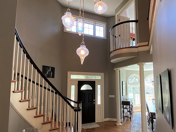 Located in the gated community, this fairy tale house will impress you with its beautiful landscaping and adorable curb appeal. Plenty of room on the 8.66 acre property for all kinds of activities. This house welcomes you with a stunning staircase and oversized windows in many rooms. Large open kitchen/family room combo has a fireplace and a view of the wooded back yard. Another family room on the main level is connected to an office/music room with a separate entrance. Three car garage right off the kitchen. On the upper level you will find a darling Romeo and Juliet balcony in one of the bedrooms. Two more bedrooms share a full bath. The master bedroom lives up to its name! Beautiful tray ceilings and massive master bath with cathedral ceilings. Must be prequalified for a showing.