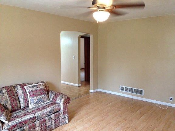 Tons of potential within this 2 bedroom, 1.5 bathroom home with attached 2-stall garage. Enjoy the outdoors on the oversized lot that includes an attached deck and concrete patio. The house features steel siding and updated windows. Appliances are included. This one won't last long! Property sold as-is.