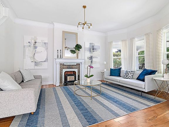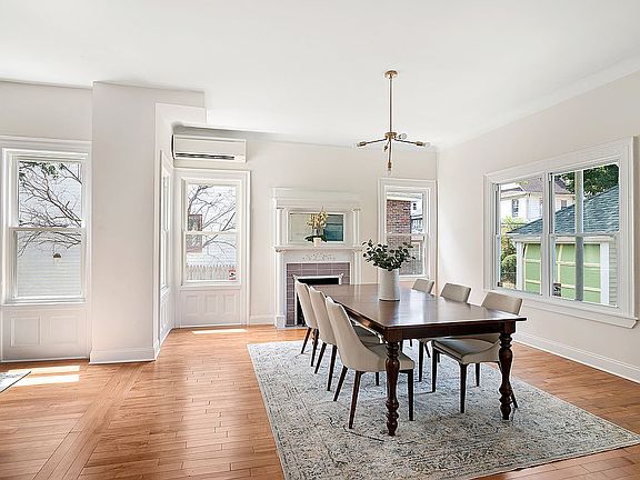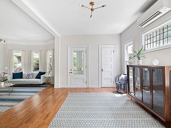 Everything you could wish for has been done for you! Completely renovated inside and out, this enchanting beauty has been beautifully redesigned to maximize open space and light while showcasing the lovely original detail and the breathtaking structure beneath. Glimpses of rough-hewn joists and exposed brick, combine effortlessly with the crisp lines of the lofty, light filled interior, creating a wonderfully organic and unmistakably inviting aesthetic. The gracious front porch with two ceiling fans to cool you on hot, Summer days welcomes you into the sprawling, dramatic open space of the Parlor floor. An absolute dream for family life and gatherings, the generous entry foyer, living/dining areas and kitchen flow together seamlessly. Ten foot ceilings enhance the feeling of open space and windows on every wall flood the room with spectacular natural light while affording a lovely connection to the outdoors. The sprawling entry foyer and living room are big enough for two seating areas, and has a bay of three windows, the original decorative, gas fireplace and an original leaded glass window. The dining room is big enough for a table that seats 10 or more, has another decorative gas fireplace and is open to the stunning chef's kitchen. Exquisite kitchen finishes include custom white painted cabinetry with Santana Quartz countertops, an integrated gold toned Farm sink and fixtures.