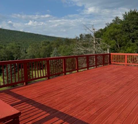 Enjoy abundant natural light in the great room with standout cathedral ceiling and sliding patio doors that open to a generous 16 X34 DECK . Revel in the dramatic mountain views and the groomed deep, private back yard .