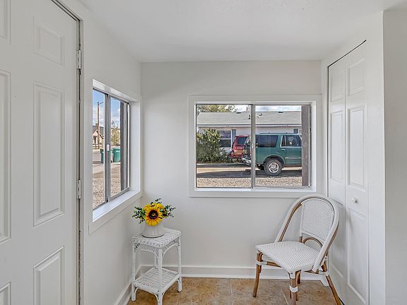 Cute Fruita Cottage situated on .20 of an acre lot. Great location just steps from the updated/refreshed Reed Park and downtown Fruita. Home features stucco exterior, several updated windows, fresh interior paint, new tile floor throughout plus new mini-split for heating and cooling. Sunny sitting area at the front of the home opens to the living room and the two bedrooms. One bedroom is non-conforming (closets are located in the adjacent sitting room) Kitchen features metal cabinets and sink (retro/original) new countertops, electric range/oven, refrigerator and stackable washer/dryer. Dining room has access to the back deck and yard. Fully fenced back yard with alley access, RV gate/parking and detached garage/shop. Check with the City of Fruita regarding the possibility of building an ADU on the property. Low maintenance landscape front yard and back yard is ready for whatever you want.