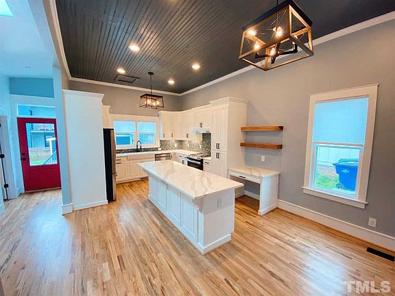Gorgeous renovated home, originally built in 1910 with historic and modern farmhouse details. Located in Raleigh's Historic Olde East neighborhood; 1 block from Transfer Co Food Hall and steps from the heart of downtown with one of a kind skyline views. Featuring 11 ft ceilings, 2 fire places, chefs kitchen, quartz countertops, SS appliances, oak floors plus brand new roof, plumbing, electrical, HVAC and detached remolded in law suite, home office or rental opportunity.