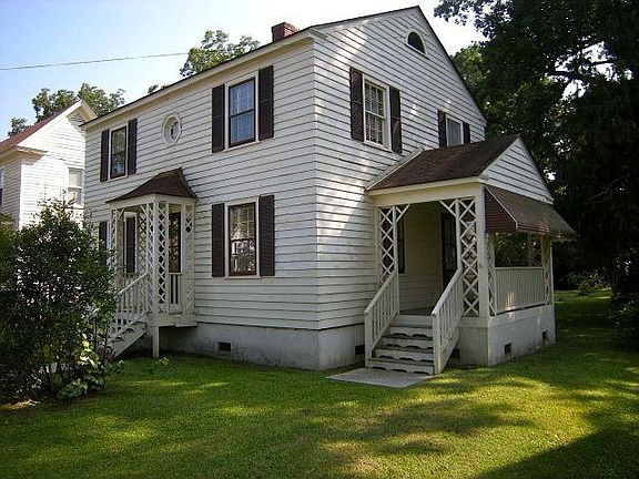 Great in town location 3/4 bedroom two bath center hall colonial has lots of family appeal and potential. Hardwood floors.Covered side porch has beadboard ceiling and the deck overlooks the pretty tree lined backyard. Built in the 1930's has character in the moldings, glass paned interior doors, crystal door knobs and more. This is perfect for someone who does not mind doing a little cosmetic work