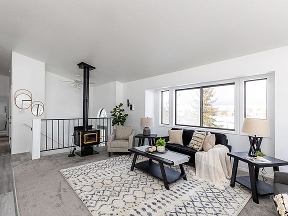 Welcome to 540 Eagle Creek Drive! This wonderfully updated home sits on over 2 acres overlooking the gorgeous Ruby Mountains! Inside, you will love all of the natural light in the main living area. Fresh paint & brand new carpet make it feel like a brand new home! The living room is spacious and has a wood stove to keep you warm all winter long! The kitchen & dining room has new wood laminate flooring & offers plenty of counter space, updated counters, tile backsplash & pendant lights above the island with a raised bar = perfect for entertaining! The upper level has 3 bedrooms including a large master suite with vaulted ceilings. All 3 bathrooms in the home have new tile flooring, tile surround, new vanities & granite countertops. Downstairs, there is a large family room that would make the perfect game area. There's also another large bedroom & updated bathroom. The spacious laundry room offers a utility sink & tons of shelving for extra storage. This home has all new interior paint & new light fixtures throughout! The backyard has a large deck off the dining room along with a lower deck. There are mature trees throughout the property along with 2 sheds & playhouse.