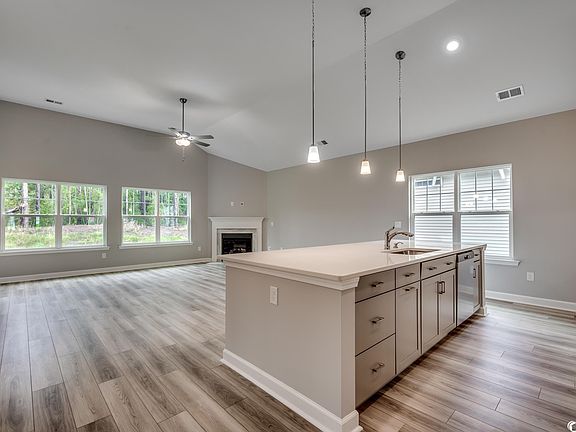 This Edgewood plan is estimated for summer move-in! 2 Bedrooms plus a dedicated office, with fireplaces found in the great room and outside under the covered patio! The Entry and Hallway will have Decorative Tray Ceilings, and 12' ceilings in the Great Room, Eat-In Dining, and Gourmet Kitchen provide the open and airy space you’re looking for! The large 20' x 10' Covered Rear Porch has plenty of space for your outdoor living needs. With the 1910 heated square feet, you'll have another bedroom and a dedicated Office, a Walk-In Pantry, and a Laundry Room. Among the included features: Stainless Steel Appliances, Staggered Height Cabinets with Crown Molding, Quartz countertops, Luxury Vinyl plank flooring from the in the main common spaces, Comfort-Height Vanity with Drawer Stack in the Primary Bath and Framed Mirrors in all baths. Some of the additional Upgrades this home will have: Stone Gray Kitchen Cabinets with Quartz Countertops, Tiled Backsplash, Gourmet Kitchen package features a separate gas cooktop, wall mounted Oven and Microwave, Pendant Lights over Island, Upgraded Chair Rail and more! Smart Home Automation and lawn irrigation system are included features. Our 1-2-10 year warranty will give you peace of mind. Superior energy efficient construction includes 15 SEER HVAC and R-38 ceiling insulation. Photos shown are of a furnished model in another community. Features, colors, and options are subject to change without notice.