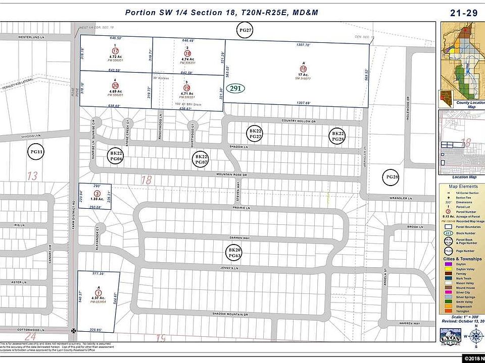 This listing includes the following: 021-291-18 595 Ranchwood Ln Par 2 4.719 AC Taxes: $538.41 SF/Yr 021-291-19 595 Ranchwood Ln Par 3 4.713 AC Taxes: $538.41 SF/Yr 021-291-20 540 Farm District Rd Par 4 4.690 AC Taxes: $2192.20 SF/Yr Total Acreage: 14.122 AC Total Taxes: $3629.02 SF/Yr