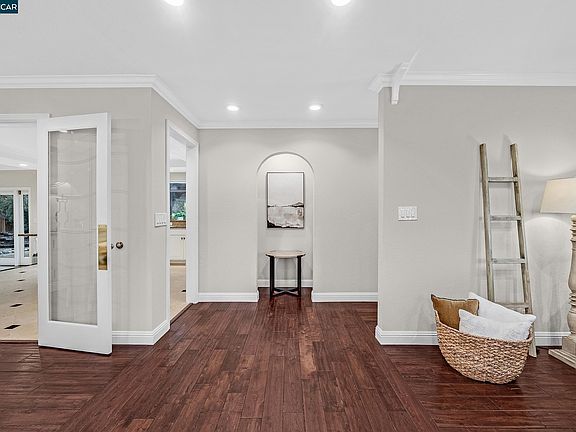 This stunningly remodeled single-story rancher is located in the highly coveted Greenbrook area of Danville and sits on a serene and tranquil court. Boasting a well-designed interior floorplan this beautiful abode features three bedrooms, two bathrooms, and Nearly 2,000 square feet of expansive living space. Notable qualities include gorgeous stone fireplaces in the living room and family room, hardwood floors, plantation shutters, crown molding, baseboards, recessed lighting, and tons of natural light throughout. The chef’s kitchen includes stainless steel appliances, gas range, deep sink, huge island with a breakfast bar and an immense amount of cabinet space. The oversized primary bedroom includes massive sliding glass doors giving you direct access to the backyard and connects to the renovated spa like ensuite with a dual sink vanity. Entertain guests in the private backyard oasis with a sparkling pool, lush green lawn area, and a large pergola. Fantastic location in walking distance to Greenbrook Elementary, parks and trails. This property offers a comfortable and stylish living space in the desirable Danville community.
