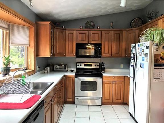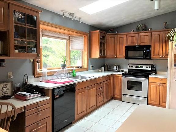Impeccable custom built contemporary on over 24 beautiful acres. Living room with cathedral ceilings, hardwood floors, and French doors out to the private deck. Spacious dining room with hardwood floors, and great natural light. Great kitchen with skylights, cherry cabinets, and opens to the dining area. Downstairs family room with cozy coal stove, master bedroom w/ ensuite, basement workshop w/garage door, huge paved drive, additional big garage shed, and park like acreage.