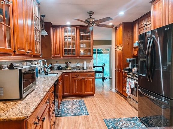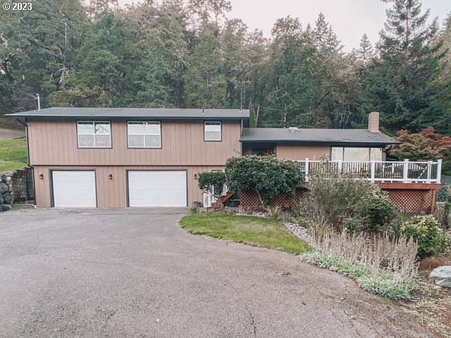 HOME, SWEET HOME! Tucked up into the trees with stunning views, you'll appreciate the privacy and seclusion that this home and property offer yet the kept convenience of being close to town. Situated on almost 3 serene acres, property includes an enclosed garden area, wrap around patio, new windows, Trex decking, plus a 40x40 shop with 2 lean-tos for all your hobbies & interests! This split- level home has been well cared for + has many updates throughout! Features include an expansive primary suite w/spacious walk-in closet, sunken tub and oversized shower, A large kitchen w/nook & a generous sized office/bonus rm w/French doors off the dining room. You'll enjoy the warm & inviting atmosphere of the living room that the cozy woodstove and picturesque window views create. A lower level includes an updated laundry room as well as a walk-in pantry/storage room, that leads to an oversized garage where you will find more storage, a workspace, and even a toilet room! You Don't want to miss out on this amazing Garden Valley Home & all it has to offer, Call for your private tour, today!