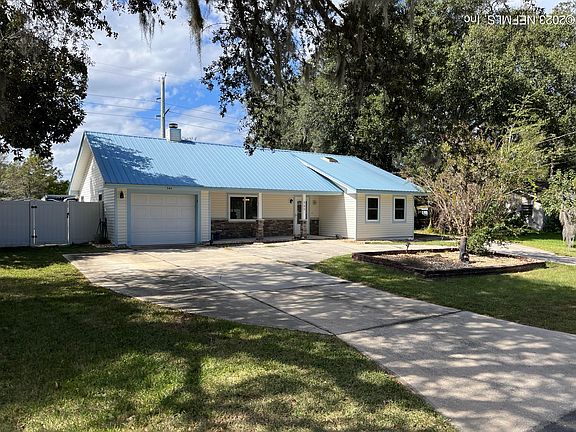 Welcome Home! This well-maintained 2 bedroom, 2 bath home offers comfort & style. No HOA or CDD Fees! An updated kitchen will provide the joy of meal prep with brand new dishwasher and refrigerator, designed for efficiency & style. Washer & dryer are located right off the kitchen & are included with the home. Freshly painted interior provides warmth & is ready for your decorative touches. New carpet in both bedrooms gives a welcoming touch. The main living areas have rich wood flooring throughout, cozy up to the fireplace. The exterior boasts a screened in lanai & rear fenced-in backyard providing privacy. Home features a metal roof for durability. 2 storage sheds included to keep your outdoor equipment. You'll love having 3 nearby boat ramps to head out on the water for the day!