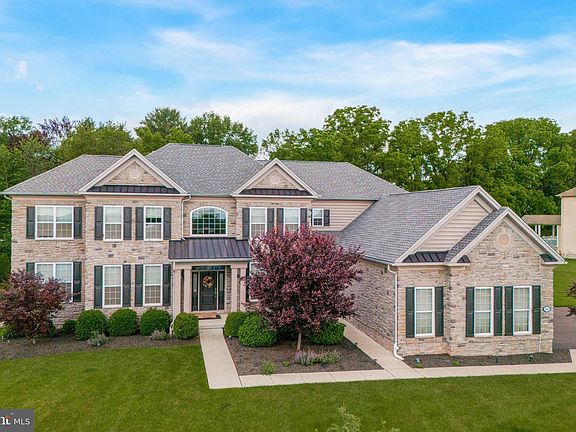 Step inside this beautifully appointed stone colonial home located in the Souderton School District and built by Toll Brothers. Welcome to 540 Grayson Lane! Let new memories unfold in this spacious, nearly 5800 square foot home. As you enter into the grand foyer, you will notice the cathedral ceilings, the detailed carpentry, the plank hard wood floors and gorgeous staircase with breathtaking chandelier. Off of the foyer you will find a formal living area and french doors to a well appointed office. On the other side of the foyer is your stunning dining room with crown molding, chair rail, tray ceiling and detailed carpentry work for those special dinners with your friends and family. The center hall will lead you to the oversized sunken Great Room with stone fireplace. The gourmet kitchen is a chef's dream! Tons of counter space and 42” cabinets, HUGE island, and a large walk-in pantry. Off the kitchen you will find a laundry room with plenty of space to organize and fold clothes. As if that isn't enough, there is another bedroom/office, full bath and wet bar on the first floor. Need even more space for fun and entertainment? Let's go explore the finished basement that is nothing short of amazing! Spectacular entertainment area, a workout area, a bar and full bathroom is what you will find, as well as an endless amount of storage. At the end of the day, you will not be disappointed retiring for the evening in the primary suite with a French double door. The hardwood floors continue into the main bedroom with attached sitting area that allows you to lounge, read or work. There's not only ONE walk-in closet in the primary suite, but TWO, the second (28' deep!) with its own dressing area. There are three other bedrooms on this level as well as two more hall bathrooms. The princess/prince suite is close to the back stairs and includes its own ADDITIONAL full bath. The outdoor space is truly amazing, with oversized TREX deck perfect for summer BBQs and entertaining with friends and family. Oversized five car garage for all your vehicles and plenty of room for a workshop. All of this located minutes away from major thoroughfares, Skippack Village, shopping and dining!