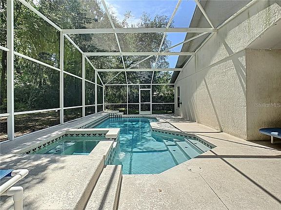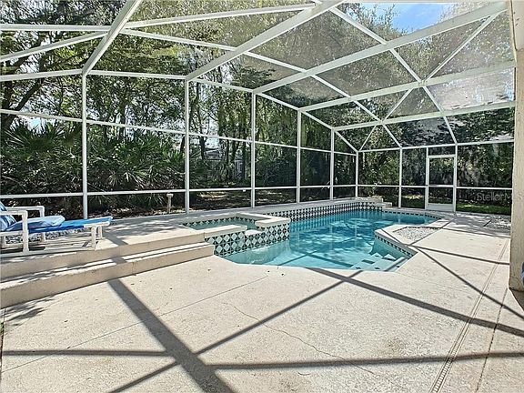 Great 3 bedroom 2 bath pool home in the low HOA community of Sunridge Woods. This home has a large pool and spa with covered lanai and private rear garden. There is an open foyer leading in to a large open plan family room/dining room. The kitchen has a charming breakfast nook area and an inside laundry. The master bedroom has a great size walk in closet and ensuite bathroom with separate tub and shower and double vanity. Roof was replaced in 2015 and the pool/spa resurfaced in 2015. Home will benefit from some cosmetic upgrades and seller is offering a credit to buyer. Unique opportunity to buy the best value pool home in this popular well located Davenport Community, make your appointment today!