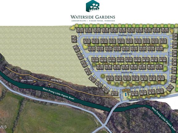 Welcome to Waterside Gardens Condominiums! Construction on this customizable unit is scheduled to begin in September and will be finished next spring. Backing to 20 acres of greenspace leading to the river, this is one of the few perimeter units that allows for expansion to a three-bedroom or covered porch. Located in the heart of Pigeon Forge on 47 beautiful acres along the Little Pigeon River, and minutes from the wonders Dollywood, Gatlinburg and the Smoky Mountains, this new construction development features all single-level, two-bedroom, two-car garage duplexes. The brick and stone exterior means you can enjoy zero maintenance living from your covered front porch or back patio. Best of all, you get to customize all interiors from a wide selection of granite kitchen tops, soft-close cabinets, LVP flooring, and any paint color you choose. We'll also customize the floor plan if you buy before groundbreaking. Each condo features a stunning stone fireplace, living room and bedroom ceiling fans, stainless appliances, cathedral ceilings, wide 36'' doors and the option of expanding the back patio or adding a sunroom or screened porch. Waterside Gardens features a community pool and 20 acres of green space with a walking trail and picnic tables for residents and their pets to enjoy. With only 16 units in this phase, these will sell quickly. Waterside Gardens is being developed and constructed by the same team that built Riverbend Gardens and Creekside Gardens in Sevierville.