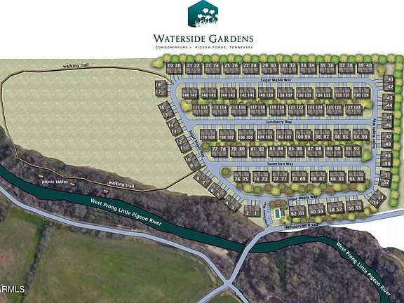 OWNER/AGENT. Introducing Waterside Gardens Condominiums! Located in the heart of Pigeon Forge on 40 beautiful acres along the Little Pigeon river, and minutes from the wonders Dollywood, Gatlinburg and the Smoky Mountains, this new construction development features all single-level, two-bedroom, two-car garage duplexes, so every condo is an end unit. The brick and stone exterior means you can enjoy zero maintenance living from your covered front porch or back patio. Best of all, you get to customize all interiors from a wide selection of granite kitchen tops, birch cabinets, LVP flooring to be used throughout, and any paint color you choose. Each condo also features a stunning stone fireplace, living room and bedroom ceiling fans, stainless appliances, cathedral ceilings, wide 36'' doors, and the option of expanding the back patio, or adding a sunroom or screened porch. Three-bedroom, single-level units are available on limited lots.