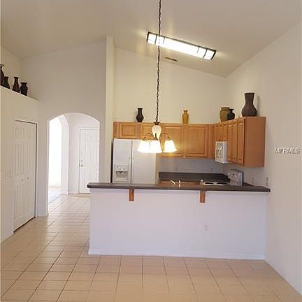 Located in the serene gated community of Highgate Park, this spacious single story POOL home has all of the comfort and convenience of Your Florida lifestyle. Mature trees in the front of the home are welcoming and keep the brick paved driveway under shade. Sought after open floor plan with high ceilings and split bedrooms. Formal living/great room, dining area and family room flowing freely in to the kitchen area and breakfast nook. A tall arched window with custom shutter brightens the living area, letting plenty of natural light in. Direct access to the private screened pool area and back deck through the living room. The kitchen features light wood cabinets, slate countertops, low maintenance ceramic tile, appliances including built in dishwasher, electric spiral stove, full size refrigerator, double stainless steel sink. Double panel sliding glass doors separate the master bedroom from the screened deck/pool area. The master bedroom features a walk in master closet and the master bath features ceramic tile floors, double sinks, light cabinets, slate counter-tops, garden tub and a separate aluminum framed clear glass shower.