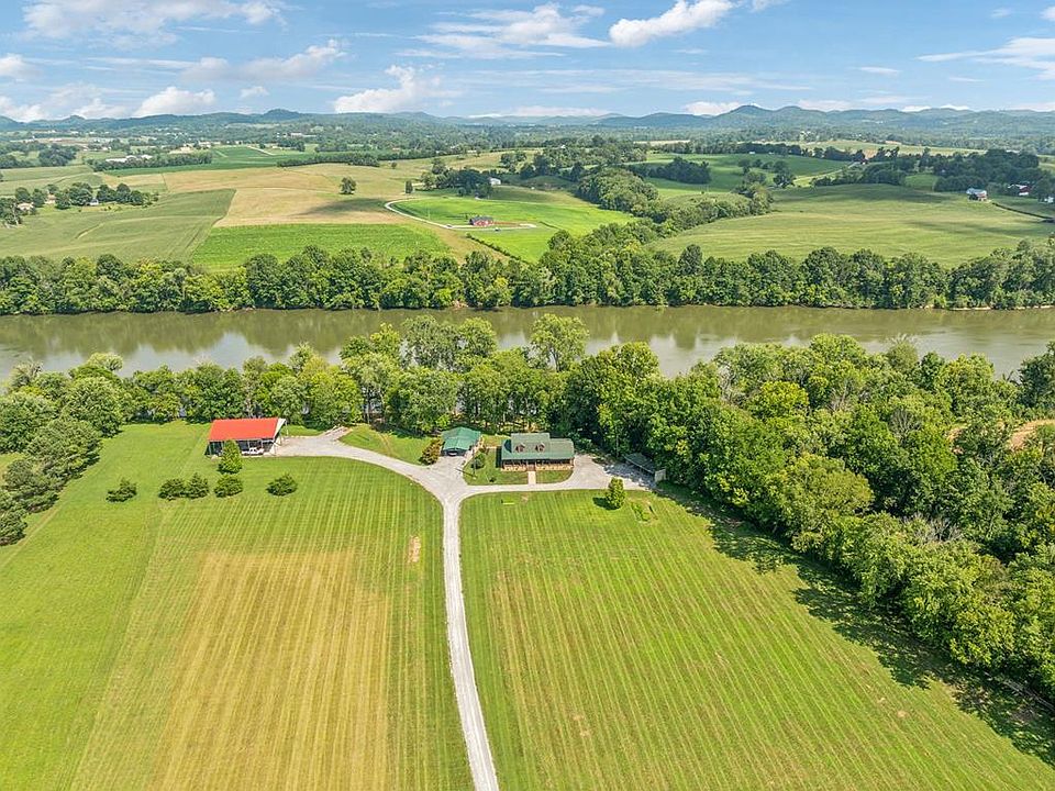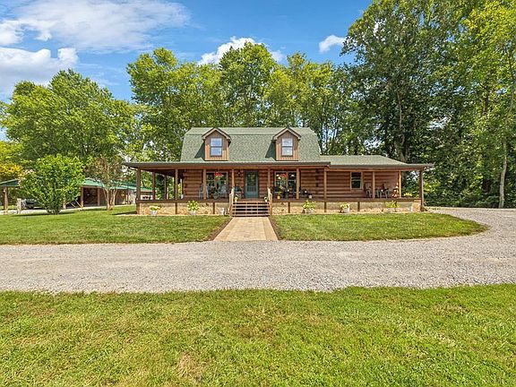 10.91+- acre riverfront paradise w/ privacy & tranquility like no other. Enter property thru wooded private drive that opens to a lg pasture w/ log home, Home has 2 carports- One 4 bay & a 2 bay carport w/shop, W/ over 350 ft of river frontage you can slide your boat or jet skis in the water from the backyard. This 3 BR/2.5 BA log home is tucked away alongside the Cumberland River w/ a 3/4 covered wrap around porch to enjoy the abundance of wildlife w/unobstructed river views, firepit & BBQ area,main floor oversized primary ensuite w/ sitting area, open concept floor plan, fireplace, office loft, tankless water heater, new roof in 2019, 2 new HVAC units. Covered 60x48 Pole Barn has an additional installed 3BR septic system, electric meter, water, RV electric & septic hookup and pre plumbed concrete pad. All kitchen appliances to remain along with washer & dryer. In the past the home has been used as an Airbnb & has great income potential as a short term rental. VIDEO COMING MONDAY!!