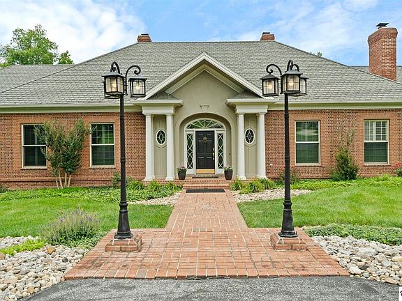 Welcome to one of the most stunning and sophisticated homes in all of Hardin County. Nestled just minutes from town yet offering complete privacy, this iconic Federal-style estate has been featured in design magazines and showcases unmatched craftsmanship and timeless elegance. With five bedrooms and five and a half bathrooms, every inch of this home reflects luxury and intentional design. The exterior boasts Flemish bond brickwork with hand-glazed headers by a local artist and color-accented brick framing the windows and doors. Step through the grand entryway onto two tons of rare blue English limestone—sourced from the same quarry as Westminster Abbey—and take in the Zuber hand-stamped watercolor wall panels, made in Paris using original 1810 woodblocks. A salvaged 1800s staircase adds rich character, while lighting throughout has been curated from custom artisans in California. Designed by renowned architect Edwin Krebbs, the home features a gas fireplace in the living room (convertible to wood burning), a walnut-finished study, and updated kitchen and bathrooms with luxury Mouser cabinetry. Plantation shutters throughout offer timeless style, enhanced privacy, and excellent light control. The massive primary suite is a private retreat with arched hallways leading to two spa-like bathrooms—each with cedar-lined walk-in closets. One features a walk-in shower, while the other boasts a jetted soaking tub with shower. Upstairs, a spacious bedroom with a full bath opens to a private balcony overlooking the saltwater pool. On the main level, two large bedrooms share a Jack-and-Jill bathroom, plus a walk-in pantry and large laundry room. The finished walkout basement includes a cozy family room, a large additional bedroom with a private bath, and a storm shelter for year-round peace of mind. Outdoors, enjoy the expansive covered back porch while taking in the beauty of the 3-acre property. A peaceful stream winds through the rear of the lot, where a stone patio provides a secluded retreat. You’ll also find a fire pit area nestled in a grove of trees with a hammock for lazy afternoons. The saltwater pool features a gas heater and sand filter for effortless enjoyment. Additional amenities include a 3-car garage, dual-fuel HVAC, a Rinnai tankless water heater, water softener, and solid hardwood doors throughout. From top to bottom, this home is a rare work of art—blending historic charm, architectural significance, and luxury in one unforgettable setting