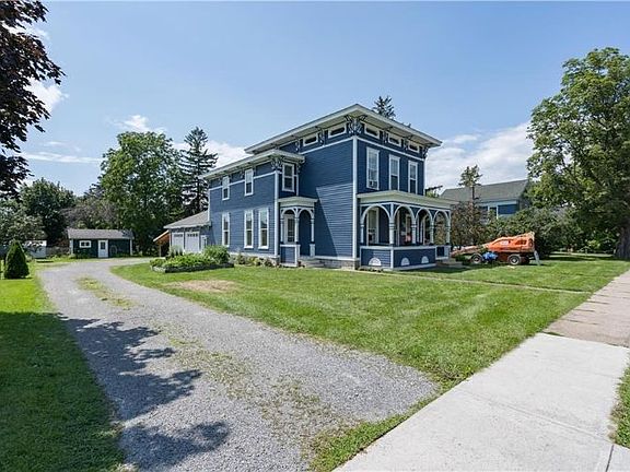 This home is truly one of Clayton's most classic homes. You may recall, the home was previously green. This home has had a complete facelift with new LP Smart siding in a crisp shade of blue with white trim that just makes the house pop. Imagine a village home with a large yard, an attached oversized two car garage, a carport and a large garden shed all within a short walk of all that Clayton has to offer. Inside the home, prepare to be wowed by the high ceilings, natural woodwork and renovated bathrooms updated to today's taste while retaining a vintage look. A large custom crafted cabinet in the hall will remain. Tucked away under the front stairs you will find a half bath. At the top of the stairs is an area that is the perfect spot for a reading nook or perhaps a small office area. This level has 4 bedrooms and 2 full baths. The walk up attic offers plenty of room for extra storage. The back stairs bring you down into the kitchen. Your favorite spot will be the front porch. What a great place to kick back and watch the world go by. Neighbors will stop to say hi. There are several gardens throughout the yard and room to expand!