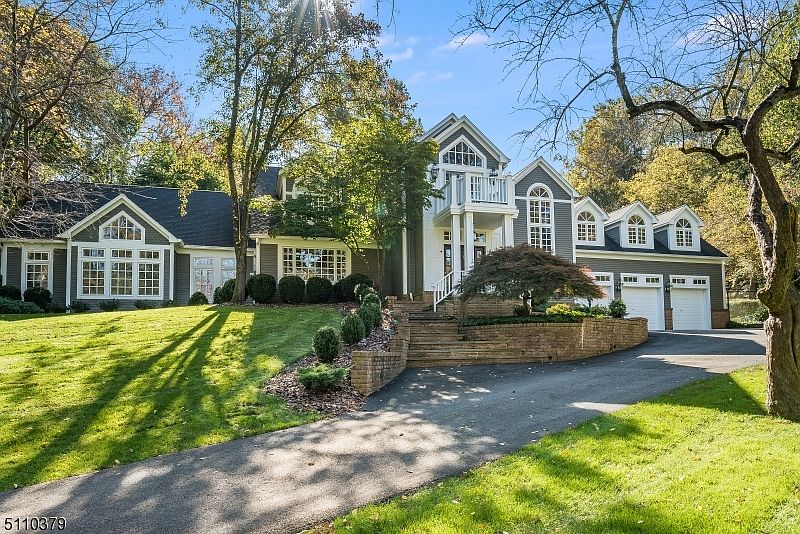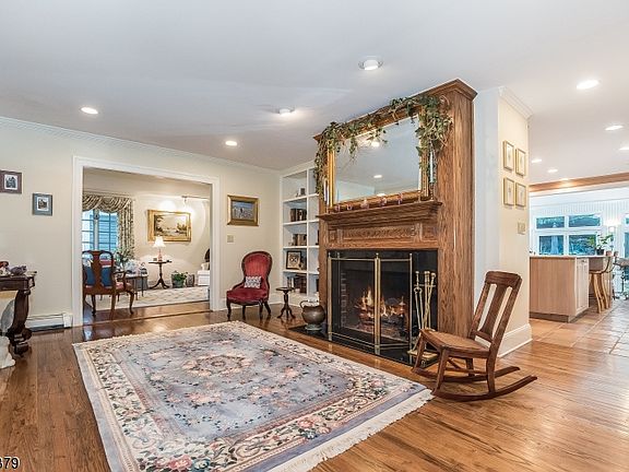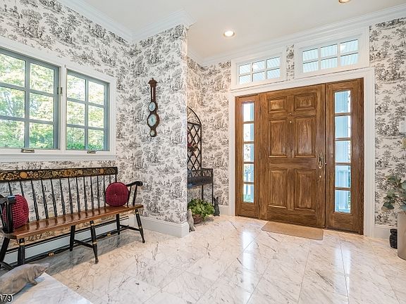 Welcome to Folly Hollow An impressive custom home surrounded by over three acres of beautiful grounds just minutes from Morristown, the architecture blends old and new with a focus on exceptional design. A marble-floored vestibule in the entryway provides visitors a brief respite to take in all that this home offers, from the beautiful millwork and custom built-ins to oversized windows and views of fabulous outdoor living spaces. A spacious, welcoming foyer with gas fireplace and oak mantle centers the first floor. Lustrous hardwood flooring graces the expansive formal living and dining rooms. The dining room, breakfast room and family room all have large windows overlooking a professionally designed and maintained backyard which features a brick and a paver patio, gunite heated spa, waterfall, handsome hardscapes, specimen trees and plantings. The family room features a two-story stone wood-burning fireplace, ceiling beams, plantation shutters and handsome built-in cabinetry designed for entertainment equipment. Adjoining the family room is a bright, airy kitchen featuring a Sub-Zero refrigerator, gas cooktop and double ovens. The generously sized breakfast room and the family room both access the outdoor living area. A powder room and laundry room are conveniently located off a rear hall. An expansive first floor primary suite is enhanced by a custom window design, adjacent wood-paneled home office, sitting area with gas fireplace and lovely fireplace surround, and a completely remodeled bath containing a zero-entry marble shower, soaking tub, heated marble floors, marble tile, bidet and a floor-to-ceiling glass block wall. There are three spacious bedrooms on the second level featuring unique ceiling lines; two of the bedrooms share a connecting full bath, the third is en-suite. A special surprise upstairs is the leisure room with unique architectural detailing and abundant natural light. A finished basement provides additional living space and storage. There is also a three-car garage, driveway with additional parking space, a Kohler whole-house generator and fenced backyard with dog run. Folly Hollow offers easy access to Route 202 and Interstate 287 as well as convenience to Morristown's NJ Transit station for Midtown Direct service. Situated in the heart of a historic part of Morris County, this property is a rare residential opportunity.