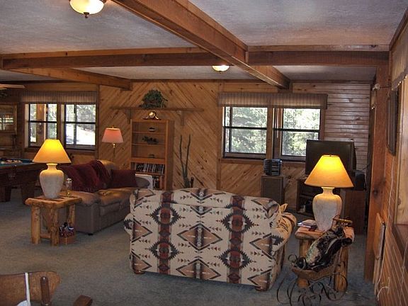 COME Hiking on your own wooded 3.7 acres with it's private cook out and campfire area. This roomy and cozy home welcomes you with a wood burning stove in the open living room and a kitchen that opens onto the large wrap around deck. The master bedroom has double french doors that also open onto the lovely wrap around deck to let in light and to enjoy mountain views. Off from the two car garage is a large workshop for the hobbiest or woodworker. As you hike in the back yard amoungst the large Ponderosa pines you can enjoy a lazy evening cook out at the firepit that is just perfect for gathering friends and enjoying the woods and mountain views.