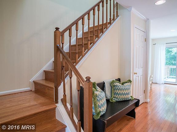 All brick townhome in desirable Mays Chapel North. 4 BR, 2.5 BA home w/spacious living room & dining room w/crown molding. Hardwood Floors throughout main level. Large eat-in kitchen w/large pantry & SS appliances that leads to rear deck that backs to woods. Fully Finished lower level w/one bedroom, family room, walk-out to patio and wood burning FP. Ready for move-in