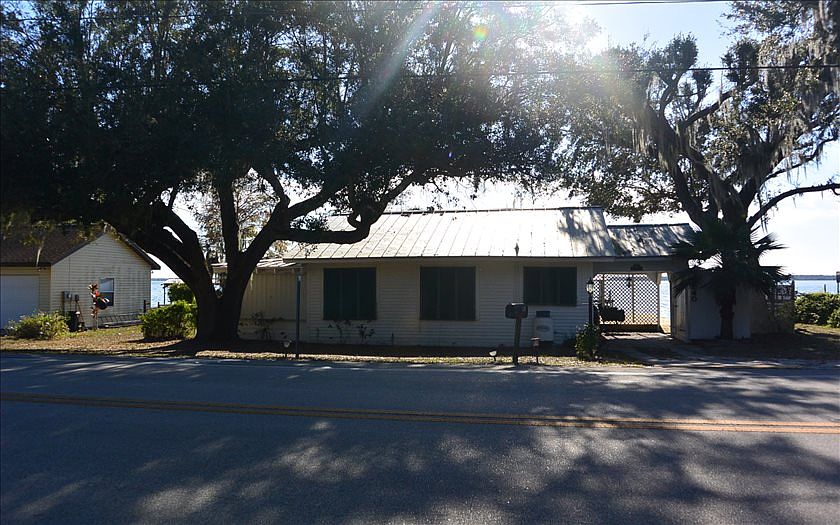 Lake June waterfront home! This is a well maintained cute home directly on the shores of prestigious Lake June! 3500 acre sand bottom "ridge" lake - perfect for swimming, skiing, fishing or just enjoying the beautiful sunsets from the LARGE "L" shaped porch which includes an outdoor kitchen and accordion hurricane shutters! New decking in the back that leads to the dock and boat house with electric lift. Home is adorable and plenty of places to "lay your head" at night. Home is partially furnished and kitchen includes a gas range. Homeowner has never had a problem with termites, but there is a transferable termite warranty included!