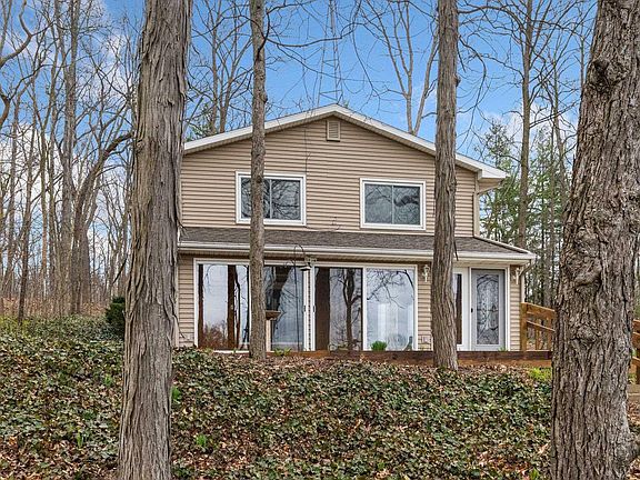 Here is your opportunity to live the lake life! This 2 bedroom, 1.5 bath home features over 1500 square feet of living space and the combined 2 lots include 118 feet of lakefront. You will absolutely fall in love with this picturesque setting. Imagine sitting in your 3 Season room watching the sunrise or sunset overlooking the lake in addition to your nicely kept and landscaped yard. Walking down to the easy up dock that adjusts to water level, so there is no need to take it out in the winter. It also includes a ladder for swimming. Enjoy swinging on your swing while absorbing the peace and quiet or sitting by the inground firepit. There is a 10x11 shed to store all your toys. Upon arriving you will notice the garage, newer concrete stairs and quonset. The inside of the home features beautiful views from almost every room. Laundry room with tons of under stair storage, and additionally a very roomy storage room. Many updates have been made to this home. Ask your agent for the list of additional personal property that remains and updates. This could be your own personal retreat away from city life!