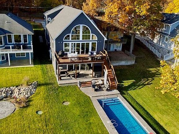 Showings Start Date, Nov. 1st. Don’t miss your chance to make memories in this gorgeous lake home on Lake James, which includes a highly-sought after (and income-generating!) lake-level VBRO/Airbnb rental unit. The home’s kitchen is absolutely stunning. It includes custom Kraftmaid cabinets, Quartz countertops, a glass tile backsplash, GE Monogram appliances, and a pot filler no-touch kitchen faucet. Looking for a bit of history? Beams incorporated throughout the kitchen and fireplace mantels are original church beams from the 1800s. Exceptional-quality materials are used throughout this home, including Pella triple-pane soundproof windows and glass sliding doors with built-in blinds, custom quarter-circle triple-pane lakefront windows, National Door & Trim 6-panel solid wood interior doors, and energy-efficient LED lighting. Virtually all of the home’s interior walls are insulated for soundproofing.The home is professionally wired for audio/video, professionally prewired for a security system and camera, and pre-plumbed for a Generac backup power supply.Also included: Two separate HVAC units, a commercial-grade hot water heater servicing the west side of the home, and a separate water heater servicing the east side of the home.Outside, you’ll enjoy a natural gas-heated inground 12x28 swimming pool with an auto-cover, and a six-person Master Spas hot tub with cover/lifter. The pool includes a salt generator pool system. Other features include a stamped patio and pool deck, new 60-foot wooden dock plants, eight solar-lit dock posts, and solar-lit assist steps leading from the driveway to the lakefront.