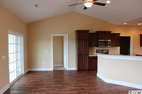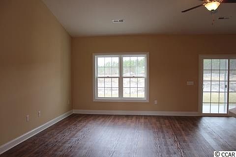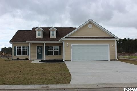 Popular Hickory 70 plan, relaxing front porch, rear screen porch and patio. Open floor plan, dining room with tray ceiling, living room has vaulted ceiling, ceiling fan, large kitchen has lots of solid wood cabinets with crown molding, breakfast counter, pantry cabinet, stainless steel appliances - microwave, smooth top stove, dishwasher, and a breakfast nook. Split bedrooms-Master suite has vaulted ceiling with ceiling fan, huge L shaped walk in closet, double bowl sinks in raised height vanity, and 5 ft. walk-in shower. Guest bedrooms and bath on opposite side of the house. Spacious finished/painted 2 car garage, with automatic door opener, pull down stairs to attic storage above. Irrigation system, gutters, mailbox, sodded and landscaped yard. Award winning local builder Creekside Custom Homes. Aynor Schools. Less than 1 mile to Hwy 22, within 30 minutes of Myrtle Beach. Future Community Pool. Video is for illistrative purposes only and may be of a similar home built elsewhere. Square footage is approximate and not guaranteed. Buyer is responsible for verification.