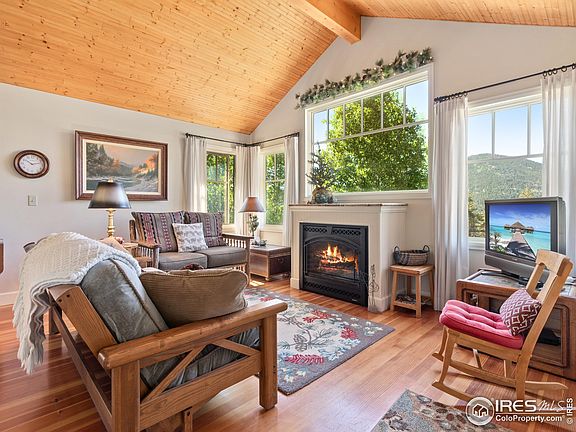 Set amidst the splendor of Rocky Mountain grandeur and 5 minutes from the entrance to RMNP, this enchanting mountain cottage-condo offers an idyllic escape from the hustle and bustle of everyday. A welcoming deck draws you in as you take note of the majestic snow-capped peaks, then you step into a perfectly crafted cottage with vaulted wood ceilings and timbers that set the character of the interior. Kitchen & dining areas invite gatherings and the living room creates quiet time with those view windows. Primary suite with cottage-luxury bath plus a bonus space in the lower level. Outside, the firepit is just perfect for watching the sun go down and sharing stories of the day. A1 zoning allows for Short Term Renting with proper permit from the county; complex offers playground & seasonal outdoor pool. Welcome to your mountain paradise - a place where serenity and beauty converge...