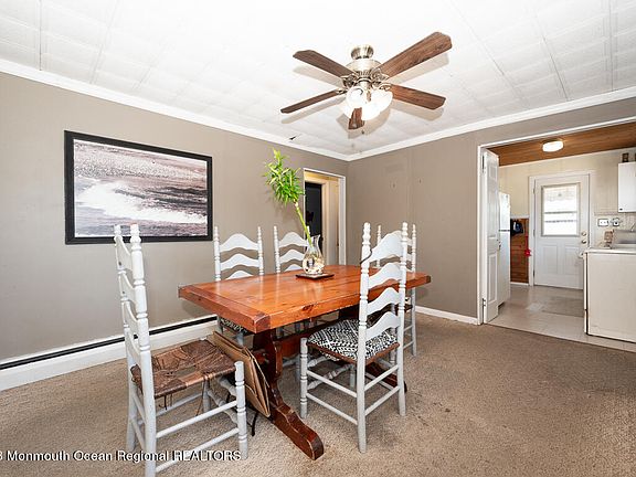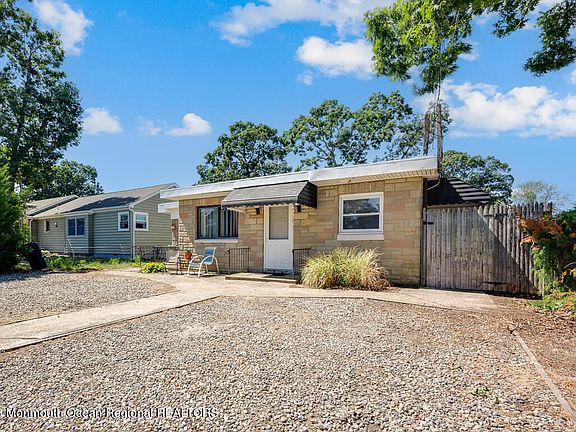 Incredible opportunity to own this 2 bed 1 bath home just minutes from the beach. Enter through the covered front door to the dining room. Kitchen with tile floor and side entrance. Through dining room to 2 bedrooms and main bath with additional storage to the side leading to huge rear living area. Rear door leads to covered patio and large backyard. Enjoy Toms River!