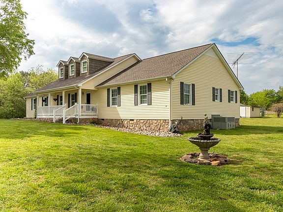 Large home with plenty of room to roam on five level acres. Has large covered front porch, three bedrooms two baths with attached double garage. Large kitchen with bar, breakfast room, large laundry room, and open living/dining area with stacked stone gas fireplace. Storage building remains. Gas tank owned by seller. Unfinished upstairs 1040sq feet is floored, rear stone patio with stacked stone fireplace, and pizza oven. Fire pit at front. Easily finished for extra rooms. Located within minutes to city of Eton, Chatsworth and Dalton.