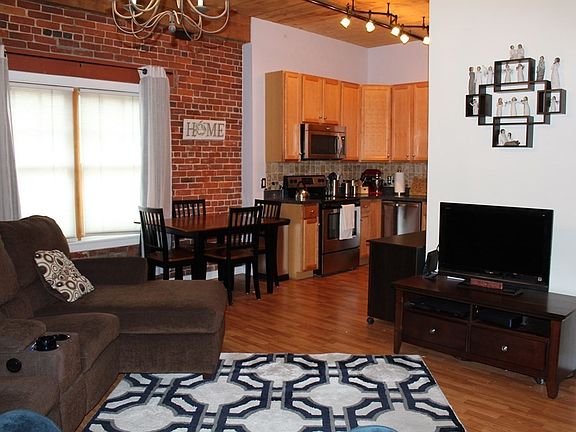 2 Bed, 2 bath upper level CORNER unit in the Lofts at Bigelow Mills which is an antique mill building filled with character that has been renovated into modern condos. This condo features an open floor plan with kitchen, dining area & LR with exposed beams, lofted 10 ft. high wood ceilings, exposed brick wall and central air. This condo gets lots of natural light and feels quite spacious. Master bedroom has extra closet and full Master Bath w/ new vanity. Bath 2 features full bath w/shower and a closet for the stackable washer/dryer (NEW) which stays. All appliances stay, dishwasher is NEW. This condo has been well cared for and recently painted (see updates attached). Seller is leaving all curtains, decorative mirrors in hall and both mirrors over vanities, and coat rack. Incl. 1 Deeded parking space and lots of visitor pkg. Not approved for FHA. Centrally located, come see this unique home and make it yours!