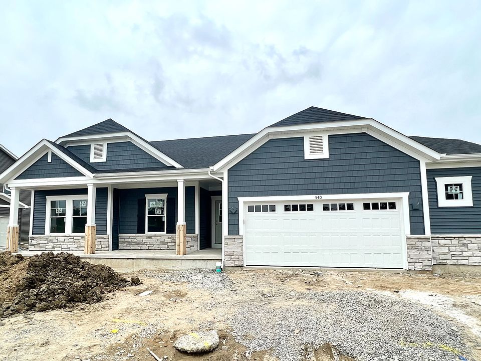 Designed for comfort and modern living, the Hudson is an open-concept ranch home with a full basement. Highlighted in this home is a stunning arts & crafts exterior, extended garage, and covered rear porch. Entertaining has never been easy in the living spaces in the Hudson. The great room is anchored by a modern electric fireplace and is open to the kitchen & breakfast room. In the kitchen, you'll find a large island, white maple cabinets, quartz countertops, subway tile backsplash, and stainless-steel appliances. The mudroom features a built-in bench, double closets, and access to the large laundry room w/ additional cabinetry and utility tub. The owner's suite features a spacious walk in, custom tiled shower, and double bowl vanity. Other notable upgrades an architectural trim package, oak railing w/ metal spindles, and lots of laminate plank flooring.