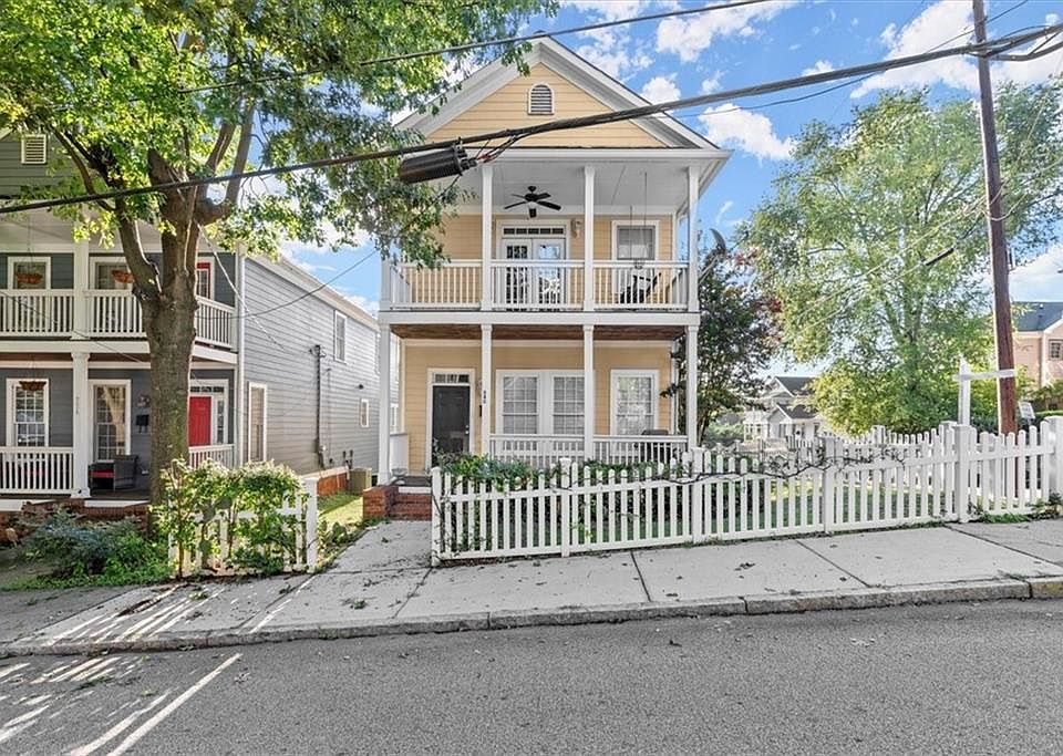 Light filled four bedroom two and 1/2 bath home on a corner lot in the center of Northern Summerhill. Upon entering the home from a fenced front yard through the covered front porch you are greeted by a large open family room with a fireplace, large dining room, and hallway 1/2 bath. There is a spacious eat-in kitchen with entrance to a two car garage. The main floor has hardwoods throughout and 10’ ceilings. Upstairs is a large primary bedroom with a covered balcony, two large walk-in closets and tiled ensuite bath with dual vanities and separate shower and garden tub. A large laundry room and storage closet are off of the hallway that leads you to an additional tiled bath and three bedrooms (one is office sized). Walkable to Publix and many restaurants and brew pubs.