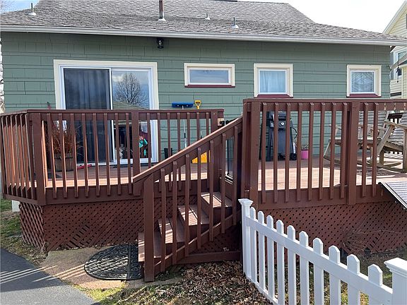 Absolutely Adorable!! Do Nothing move in ready! Walk up to your lovely porch and to have your morning coffee on! Nicely updated 3 bed 1 bath with loads of character and charm. The first-floor bathroom and kitchen boast new LVT flooring! The large first-floor bedroom features a spacious closet, built-in dresser with vanity, and ample natural light. The kitchen is equipped with new appliances and a dining area, perfect for family meals (also big area for a dining room off kitchen). Outside, a large back deck awaits through the sliding glass door, ideal for outdoor gatherings or simply relaxing in the fresh air. Backyard fenced in for pets or children. Additionally, the property includes a large 2-car garage with electric door openers.