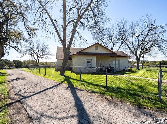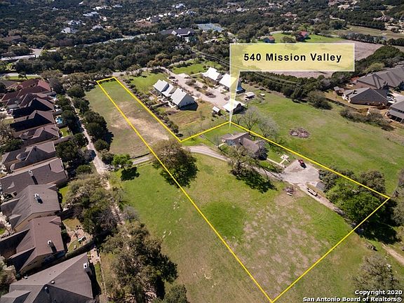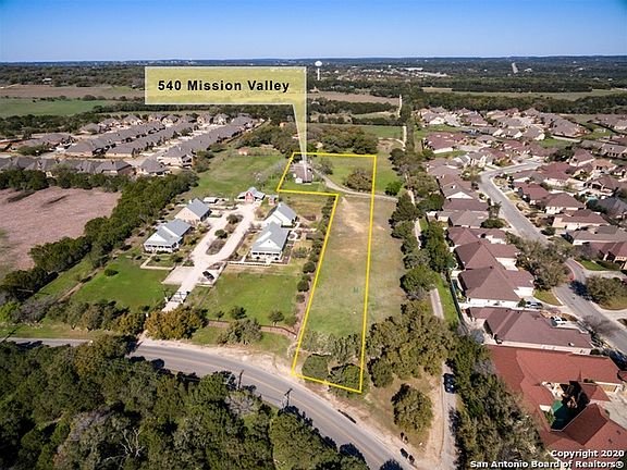 Great development potential 3 miles from the loop in New Braunfels! 1.79 acre flag lot is just outside of city limits and runs out to Mission Valley Rd directly across from John Newcombe Estate & CC. Open lot lends itself to development of town/garden homes or a larger single-family homesite. Farmhouse built 1871 currently tenant-occupied. Overlaid property lines in image are reliable but not guaranteed- buyer to verify with survey on file. Sold as-is.