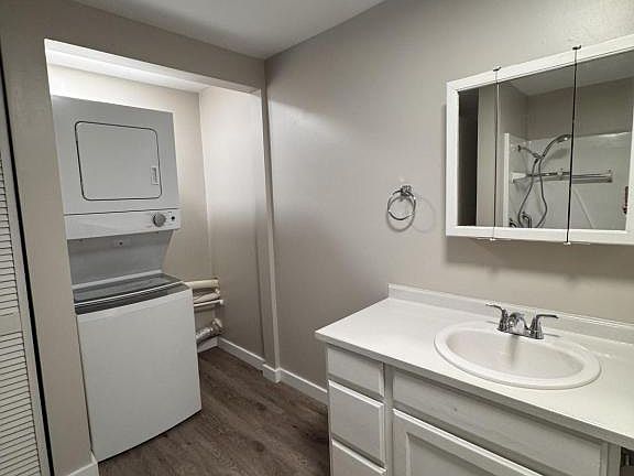 Fully updated 1 bed 1 bath Condo in a 55+ community. This fully remodeled condo features brand-new flooring and fresh paint throughout, along with a stackable washer and dryer for added convenience. The community is pet-friendly, welcoming your furry companions to share in the joy of your new home. Located in a vibrant neighborhood, this condo is just minutes away from shopping, dining, and entertainment options. Experience the perfect blend of comfort and accessibility in this inviting space. Don't miss the chance to make this condo your new sanctuary-schedule a tour today!