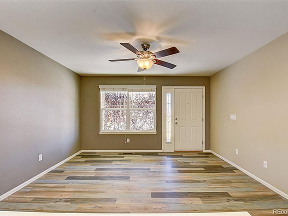 Wonderful ranch style home in the quiet Traditions neighborhood. Open floorplan with brand new beautiful waterproof NuCore Vinyl plank flooring. Full finished basement which includes a family room, bedroom, bathroom and extra storage space. 2nd bedroom has an amazing built in murphy-bed with storage. Large back patio great for grilling out and entertaining. The home does not back up to any neighbors. Sprinklers in front and back. Electric car charging station in garage. Close proximity to DIA, Buckley AFB, and Southlands shopping and restaurants.