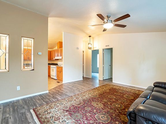Move in ready! Beautiful granite countertops in kitchen and bathrooms. New light fixtures, new sinks and faucets. 3/4ths of flooring is new wood grain. New dishwasher. Gas stove and new fan/hood above. Remote controlled fans. Furnace / AC is approx. 7 years new. Property leveled in Oct. 2018. Producing peach and apple tree in the bigger than average back yard. Carport will convert easily into garage. Room enough for car and golf cart. Brand new roof with 30 year shingles, 2 years labor. Community clubhouse and area has spa, pool, activity rooms, pickle ball, dog park, horse shoes. HOA fee covers water (unmetered), sewer, and central trash.