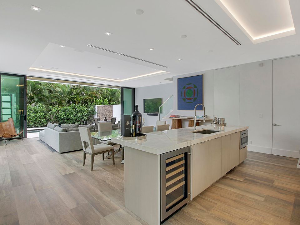 Gorgeous NEW CONSTRUCTION townhouse, one block from the Beach. This coastal Modern open floor plan, features 10 foot pocket sliders with impact glass, tray ceilings, outdoor kitchen, private pool, and lush landscaping. His and hers master closets, blackout shades, second floor laundry, all bedrooms are en suite, glass railways along the stairs. Open kitchen and dining area, top of the line Meile Appliances, custom wood cabinetry, marble countertops, microwave drawer, and wine refrigerator, walk in pantry. Concrete block roof, both stories are CBS. Master bathroom with seamless glass walk in steam shower with linear drains, and soaking tub. Two zoned AC. Located within walking distance of restaurants and shops. Designed by famed architect Richard Jones and Nines Development