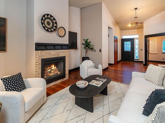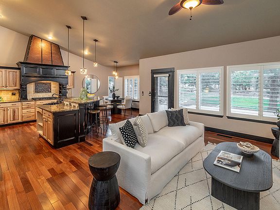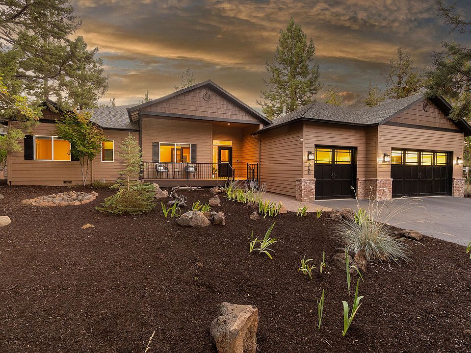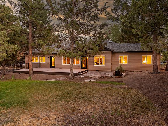 Welcome home to this lovingly maintained property in NW Bend's desirable River's Edge Village. This single-level residence offers 2,359 sq. ft. of living space on a generous .51-acre lot at the end of a quiet cul-de-sac. Featuring 3 spacious bedrooms and 2 bathrooms, plus a large office that can serve as a 4th bedroom. The open great room floor plan is accentuated by vaulted ceilings, plantation shutters, Brazilian teak hardwood floors, and a fireplace. The custom kitchen has granite countertops, breakfast bar, black stainless-steel appliances, a walk-in pantry, and a handmade range hood that adds a unique and elegant touch. Retreat to the spa-like primary bath suite, complete with a tiled walk-in shower and jacuzzi tub. Enjoy the great outdoors on the expansive TimberTech deck overlooking the massive backyard. The oversized 3-car garage with built-ins and workbench is ideal for all your gear. This one checks all the boxes!